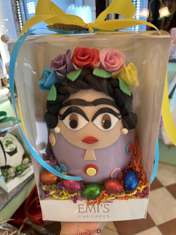 300 gram Milk Chocolate. Colours may vary slightly. Each decoration is handcrafted and all our eggs are packaged in custom boxes with mini chocolates and ribbon.